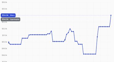 Wichtig ist jedoch, wie damit umgegangen wird: Im Anschluss hat sich das Konto erholt und ist auf etwa 54.000 € gestiegen – ein Plus von rund 8 %. Danach hat sich die Performance wieder stabilisiert.